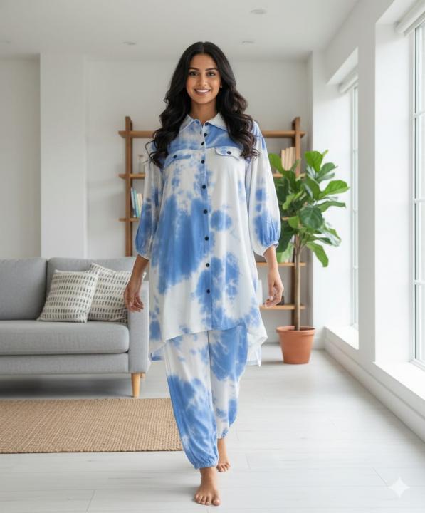 Long night suit full sleeve tiger print frock style Viscose material very soft